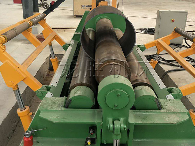 該機優(yōu)點是板材端部預彎及卷圓可以在同一臺設備上進行。